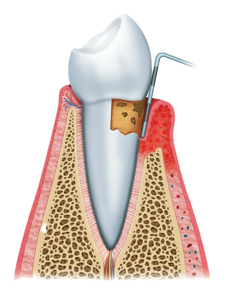 Gum disease, also called periodontal disease, is a common infection that affects the gums and supporting structures of the teeth. It often starts as gingivitis, marked by red, swollen, and bleeding gums. If left untreated, it can advance to periodontitis, where gum tissue pulls away from the teeth, creating pockets that harbor harmful bacteria. This can eventually lead to bone deterioration, loose teeth, and tooth loss. Although poor oral hygiene is the leading cause, factors like smoking, diabetes, hormonal changes, and genetic predisposition can also increase the risk. Early diagnosis and consistent dental care are crucial to effectively managing and preventing gum disease.